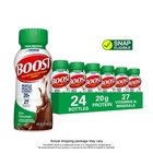 BOOST High Protein Nutritional Drink, Rich Chocolate, 20g Protein, 24 Bottles About this item 24 pack of 8 fl oz bottles of BOOST High Protein Rich Chocolate Nutritional Drink Nutrition drinks with a rich chocolate taste you’ll love Rich chocolate protein drink with 20 g of high quality protein for muscle health plus 27 vitamins and minerals per bottle Nutritional shakes designed to provide nutritional energy with 240 nutrient-rich calories and 8 B-vitamins to help convert food to energy Ready to drink protein drink that contains 100% more protein than BOOST Original shake (20 g protein in BOOST High Protein Drink vs 10 g in BOOST Original) Nutritional shake is gluten free Packaged resealable plastic bottles Product details BOOST High Protein Rich Chocolate Flavored Nutritional Drink is a high protein nutritional shake that provides balanced nutrition as part of your daily diet. This rich chocolate high protein drinks provide 20 grams of protein for muscle health and 27 vitamins and minerals including vitamins C & D, zinc, iron and selenium, key nutrients for immune support. Not only does this high protein shake support muscle health, it is designed to provide nutritional energy with 250 nutrient-rich calories and B-vitamins to help convert food to energy. BOOST High Protein Rich Chocolate Nutritional Drinks have a delicious chocolate taste and provide 100% more protein than the BOOST Original drinks (20 g protein vs 10 g in BOOST Original). This pack of high protein chocolate drink includes 24 reclosable 8 fluid ounce bottles for easy storage and portability. Whether you want extra protein, less sugars, more calories, fewer calories or simply great nutrition for everyday living, there are BOOST nutritional shakes that fit your needs. Inactive Ingredients N/A Ingredients WATER, GLUCOSE SYRUP, MILK PROTEIN CONCENTRATE, SOY PROTEIN ISOLATE, SUGAR, CANOLA OIL, AND LESS THAN 2% OF COCOA PROCESSED WITH ALKALI, VITAMINS AND MINERALS*, CELLULOSE GEL AND GUM, SALT, SOY LECITHIN, CARRAGEENAN, NATURAL FLAVOR, STEVIA LEAF EXTRACT, STEVIOL GLYCOSIDES *VITAMINS AND MINERALS: POTASSIUM CITRATE, SODIUM ASCORBATE, MAGNESIUM CHLORIDE, CALCIUM PHOSPHATE, MAGNESIUM PHOSPHATE, CHOLINE BITARTRATE, DL-ALPHA TOCOPHERYL ACETATE, POTASSIUM CHLORIDE, FERRIC PYROPHOSPHATE, ZINC SULFATE, NIACINAMIDE, MANGANESE SULFATE, CALCIUM PANTOTHENATE, PYRIDOXINE HYDROCHLORIDE, RIBOFLAVIN, FOLIC ACID, COPPER SULFATE, THIAMINE HYDROCHLORIDE, VITAMIN A PALMITATE, POTASSIUM IODIDE, SODIUM SELENATE, VITAMIN K1, CHROMIUM CHLORIDE, BIOTIN, VITAMIN D3, SODIUM MOLYBDATE, VITAMIN B12, (Insert Rainforest Alliance Logo), Cocoa, Rainforest Alliance Certified Cocoa. Find out more at ra.org. Stop Use Indications See packaging Health Concern Muscle Growth