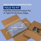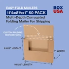 11 1/8 x 8 5/8 x 1" Kraft Easy-Fold Mailers. Economical kraft construction helps reduce mailing costs. These -piece mailers have scores at multiple depths to ensure the proper fit for your products. Simply place product in the center, fold in the sides at your desired depth and seal with tape. Economical 200#/ECT-32-B kraft corrugated construction. Proudly made in the USA! Perfect Moving Supplies - Designed to fit clothing, books, household, kitchen, garage, basement, office supplies and other personal items for moving, shipping, storage, or small business packaging Heavy Duty Shipping Boxes - Holds up to 65 lbs (pounds), 32 lb (pound) edge crush tested, certified and tested to meet all single wall box storage, mailing, and freight requirements Extra Large, Large and Medium and Small Size Boxes - Made of kraft brown unprinted cardboard, single-layer corrugated boxes are lightweight and sturdy, perfect for house files, business file and personal household items 50 Pack Bulk Box Value Bundle - Manufactured from BOX USA and brand new 100% Recyclable and Reusable - Simple materials, excellent performance; Made in the USA
