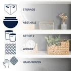 Organize your kitchen or pantry with these handwoven, easy-to-slanted baskets that stack within another. Made of an iron frame and hyacinth weaving, this storage bin adds a touch of bohemian and coastal decor to any home. When not in use, nest the baskets on each other to save space. These baskets have a beautiful natural tone from their hyacinth weaves, adding coastal style to any space; crafted by artisans, the color can be slightly different than shown baskets of various sizes with wire frames and hyacinth weaving, and built-in handles per basket The hyacinth weave on our basket pair complements any coastal or bohemian decor in your home Product Measurement: 9 "W x 11 "D x 7 "H, 7.5 "W x 9.5 "D x 6.5 "H, Do not stand or sit on unit. Wipe clean with a soft cloth dampened in water and mild soapy solution. Wipe dry with a clean, dry cloth. Keeping this unit clean and storing it properly makes it last year after year.