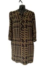 BURBERRY BRIT BLACK & BRONZE LONG SLEEVE SILK SHIFT DRESS V NECK WITH TIE SIDE POCKETS SIZE UK 8 MEASURES ACROSS THE CHEST PIT TO PIT 19'' + 36.5'' IN LENGTH DRY CLEAN LINED