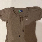 BURBERRY Knit Dress Short Sleeve Flare Skirt Border Brown Women Size 38 Used