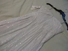 Welcome to my Auction! Up for bidding is a gorgeous silk gown from designer Badgley Mischka. This elegant and ethereal design is perfect for any dressy occasion! Features a beautiful pleated and wrapped bodice design, sheer white silk shell that is suffused with silver threads for a magical shimmering look, soft mint color poly lining (layered twice in the skirt to give fullness and movement), light boning in the bodice for flattering shape and back zipped closure with hook & eye. Brand new with tags - and retail of $990.00 - this is the dress you've been dreaming of for your wedding, prom or special events! Size is marked '4' - but could also work for a larger size 2, or small size 6 Please check measurements as follows: 53 inches long from center of neckline to hem (comes to a slight train of 57 inch length in back), 30 inches in bust (best fits bust 32-34 inches), 40 inches in hips, 30 inches in waist. Please ask all questions before bidding - serious buyers only. I will report non-paid items to ebay. Please be considerate and make sure you can complete your sale. Returns are accepted only in cases of items not being as described or wrong item sent. I cannot accept returns of used cosmetics. I am an individual seller - not a department store. Processing returns is time-consuming and costly. Ebay takes a percentage of every sale, so I cannot refund shipping costs. Be sure you like the color, check the size, ask questions etc. to ensure you will be pleased with your purchase. Thank you for visiting and good luck!