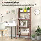 Bamboo Ladder Bookshelf 4-Tier Living Room Storage Organizer Display Plant Shelf ● 100% Natural Bamboo: The whole frame of this 4 tier bookshelf is made of selected bamboo material with varnish, which is burr-free for smooth touch. Therefore, you can clean it with ease. Likewise, the natural bamboo adds a rustic addition to your space. ● Spacious Storage Space: Featuring 4 shelves of different widths, this 4-tier bamboo ladder bookshelf (14" height between shelves) is carefully designed to accommodate different belongings, such as books, potted plants, ornaments, photo frames, storage baskets and sundries to keep your space tidy and clean. ● Anti-tipping Device and Reinforced Crossbars: To keep it stable for freestanding and make it safe to use, this storage display shelf is equipped with an anti-tipping device that is great for families with kids and pets. Moreover, the reinforced crossbars and anti-slip foot pads ensure additional stability. ● Hassle-free Installation: With a straightforward instruction and all necessary accessories included, the assembly of this ladder bookcase is simple for time-saving. Overall dimension: 24'' x 14'' x 58'' (L x W x H). ● Multifunctional Design: In addition to using as a ladder bookshelf in your study room, this indoor wooden furniture can be used as a storage rack in the living room, kitchen or office, a plant stand on the balcony, fully satisfying your various requirements. And the perfect size will fit different places. Color: Walnut Material: Bamboo Product Dimension: 24" x 14" x 58" Net Weight: 9 lbs Weight Capacity of the First Shelf: 22 lbs Weight Capacity of the Second Shelf: 33 lbs Weight Capacity of the Third Shelf: 44 lbs Weight Capacity of Bottom Shelf: 44 lbs