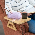 Trayble with Device Holder The Most Stable Wide Arm Table: With longer legs, friction-generating rubber grips, and wide-profile hinge, The Couch Table isn’t just more stable, but it also covers the most arms. Innovative Device Holder: Our dual slot phone holder Keeps your gadgets accessible, offering a hands-free experience for streaming or browsing at multiple viewing angles from the comfort of your couch. For All Sizes Couches: The first thing you notice about this foldable table, is the heft of the hinge and clamp of the spring. It creates a 14” wide grip for the arms of medium to wide arms (4” Flat Arms all the way to 14” Round Arms!) Try this Durable 100% Bamboo Snack Table and see! Gripping, Not Slipping: Our friction-generating rubber grips do exactly that! They stop your tray table from rolling around so you can sit your drink next to the remote without worry. Combined with the longer 4x8” Legs they create an even larger gripping surface than similar tv tray tables. When You’re Short On Space: Not only does this small table (13.75” x 9.5”) take up less space than regular tv trays for eating, but it also folds into itself – a compact 2” high – to store under the couch when not in use. And while you shouldn’t lean on it, you can certainly enjoy a regular sized dinner plate on it!