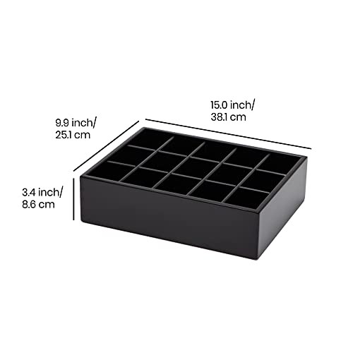 Return Policy Fast Delivery Trusted seller Bamboo Closet Drawer Organizer, 15 Compartments - Drawer Divider & Storage Box for Ties, Bras, Briefs, Socks & Jewelry - Storage Organizer for Dressing Room & Bedroom - Black Product Description Drawer Divider with 15 Compartments: Switch to an effortless organization with closet organizer - perfect for storing your bras, briefs, underwear, socks, and ties. It features removable dividers to create extra space and offer neat organization for both towels and t-shirts Multi-functional Storage: The drawer divider can also work as a storage box for your bathroom, dressing room, countertop,, and office. Its universal compartments can hold watches, keys, tie clips, keycards, cufflinks, and other daily essentials Durable and Water Resistant: The drawer storage is made from 100% natural solid bamboo which is stronger than wood. It is protected with 3 layers of waterproof coating which enhances durability and smoothness of the surface Perfect Gifting Option: Simplify organization and storage for your loved ones with this functional drawer divider. Its natural bamboo finish and minimal design makes it a great gifting option Long-term Sustainability with : The multi-compartment desk drawer organizer is made from 100% natural bamboo which is more sustainable than wood and an eco-friendly option for the planet Shipping Returns Payment Shipping Shipping is FREE to all addresses other than APO/PO boxes in the lower 48 states. All our stock ships from US-based warehouses. Shipped via USPS or UPS (depending on location and package weight) Unless stated otherwise, all orders will ship within 24-72 hours of your payment being processed. Check our feedback to see the great reviews of FAST shipping we offer. Returns Seller does not accept returns Payment We currently accept payment via eBay managed payments only. Once payment is cleared, we will dispatch your shipment within 1-3 business days. Please refer to the "Shipping" tab for more information regarding shipping speed to your destination.