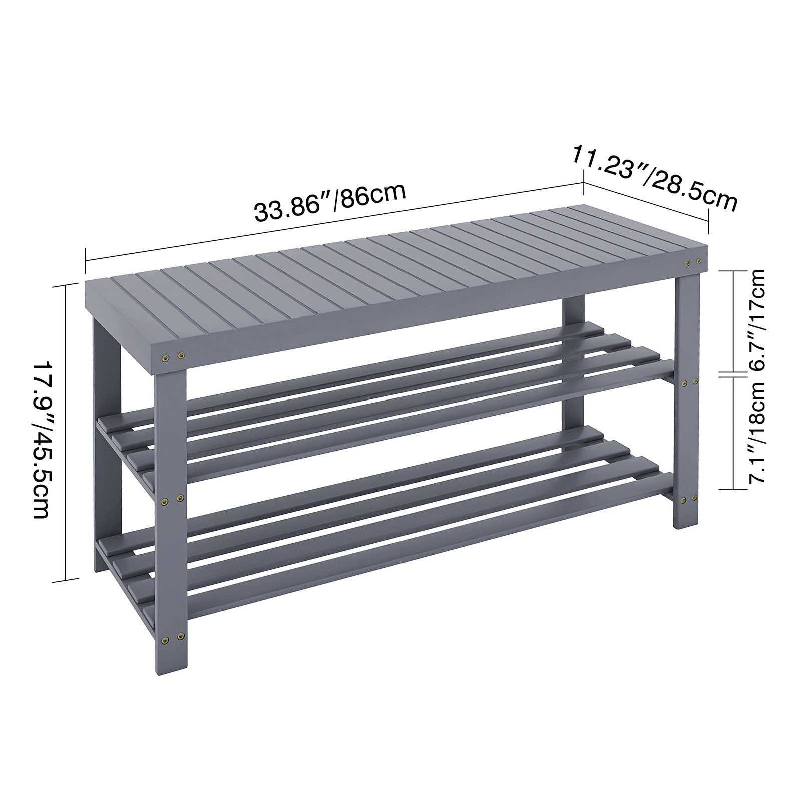 ★ Made of 100% well-sanded solid bamboo and covered with an eco-friendly protective coat of lacquer, touching very smooth and looking beautiful, fits great in your hallway, closet, living room, bedroom, bathroom, patio or kitchen ★ HIGHLY VERSATILE : This shoe shelf is a combination of bench and storage, great for organizing shoes, bags, box, also perfect use it as a plant stand, bathroom rack, sofa side shelf, end table, bed end and more ★ EASY TO INSTALL & STURDY: With included illustration and tools, only a few simple steps will set it up. Top and frame with strong bamboo plank and galvanized metal parts hold up to 255 lbs static load ★ SAFE DESIGN & PROPER SIZE: Counterbore, smooth surface, and round corners will cause no harm to your belongings. Ideal size of 33.86 x 11.23 x 17.9 inches accommodates up to 4 pairs of shoes per shelf ★ WHAT YOU GET: high quality shoe rack bench, friendly customer service