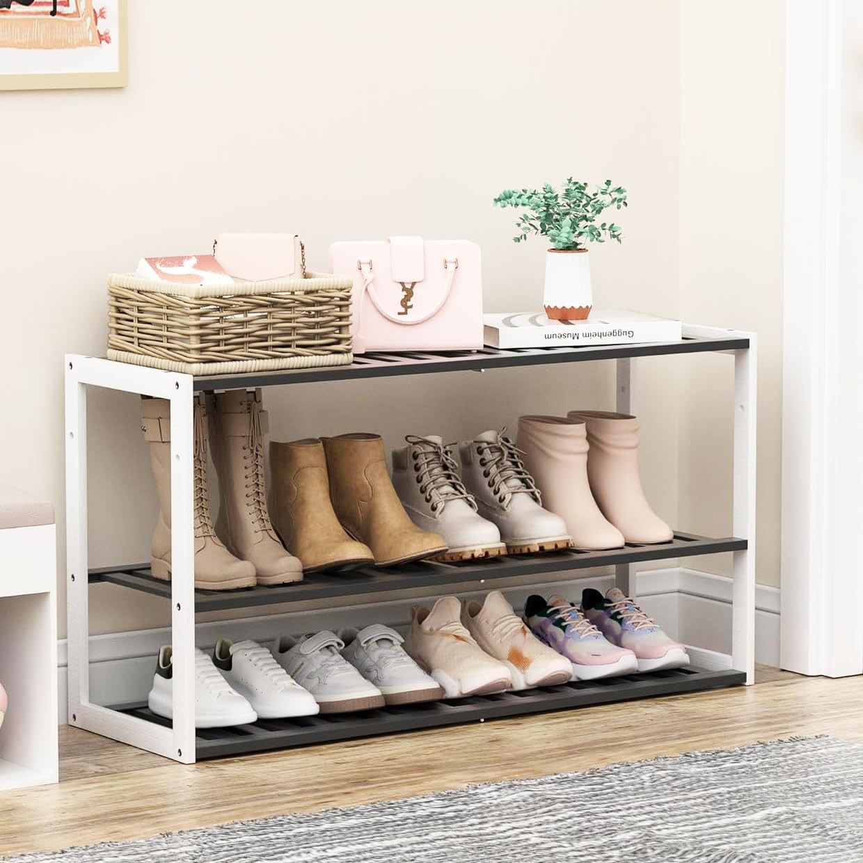 As a modern person with a busy schedule, do you get frustrated when you come home to a pile of scattered shoes? Do you want to start a clean and convenient life? This narrow shoe rack is the perfect choice for you.6-Shelf Bamboo Shoe Rack for Narrow SpaceThis is an elegant and beautiful shoe rack that complements your existing furniture, and you deserve to have it.Vertical Stackable Shoe RackThis shoe rack can be freely combined according to your needs, and can keep your foyer or living room neat and tidy. It has a very simple design, but can provide you with plenty of daily storage space.Versatile storage shelfPlace this shoe rack wherever you need extra storage space. In the foyer? In the dressing room? In the bedroom? All no problem! A real all-rounder!Removable and reusableOur shoe rack can be disassembled and reused without tools. You can take it apart when you move and reassemble it in your new home.is dedicated to the development of household products. Our mission is to help you keep your home clean and tidy. Keep everything in your home in order.PRODUCT DESCRIPTION:Material: BambooSize: 10.27 x 10.27 x 35.94 inchesWeight: 3.4 poundsPacking List:6 x top plate20 x upgraded bearing bucklesWarm Tips:1. We sell a 6-tier free standing shoe rack. When you receive our shoe rack and open the package, please check the corresponding accessory details as soon as possible. (Each set has 20 side panels, 6 top panels).2. It is normal for the side and top panels to appear more or less when the separate 6-tier style installation is changed.3. To avoid unnecessary damage to parts, we recommend a small force for side mounting. π [High Quality Materials] The closet shoe rack is made of high quality bamboo and wood materials, which are sturdy, lightweight, easy to move and clean, and have a more stable structure. Bamboo Shoe Rack has strong load-bearing capacity (about 20-26lb per layer) and can easily accommodate heavy shoes such as leather boots and basketball shoes, complementing any decoration in the room. π [Stackable and Adjustable Design] The 3 tier bamboo shoe rack has a perfect pin design without stacking tools, two 3 tier shoe rack units can be stacked into a 6 tier shoe rack, and three 3 tier shoe rack units can be stacked into a 9 tier shoe rack. Moreover, our bamboo shoe rack has 4 holes of different heights, allowing you to install different shoe rack display methods according to your actual storage needs. π [Size and Capacity] The front door bamboo shoe rack measures 32.5 inches long x 11 inches wide x 17.3 inches high, making the most of closet space or narrow hallways. The 10 inch space between the shelves of the shoe rack allows you to store any type of footwear, from sneakers to long boots. Please measure your size before purchasing a bamboo shoe rack to avoid size mismatch or disappointment. π [Reliable and Reassuring] We insist on a better choice. Unlike other bamboo shoe racks, we have added a handle, which is very convenient for you to move around. 3 layers of protection, lacquer layer+wax layer+waterproof layer, make this stackable bamboo shoe rack suitable for different environments. We use double screws (4 screws) at the center seam of each shoe board, so the 3 layer shoe rack will not shake or break in the closet. π [Multiple Application Scenarios] Shoe rack shelf simple design and beautiful appearance suit various styles of home decoration. It is not only a shoe rack, but also a storage rack or flower rack for the living room or bedroom, and can be used to store towels and toiletries in the bathroom. This bamboo shoe rack can be used as a Christmas, Thanksgiving or birthday gift for dear family or friends. π [Easy to Assemble] This is a good bamboo shoe rack with a smooth surface for easy cleaning. When needed, it is lightweight, portable and stable enough not to collapse. You can assemble this shoe rack in just a few simple steps. The assembly instructions are very easy to follow and you can install it in just 10 minutes.