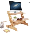 Barely used bamboo adjustable monitor stand/standing desk. Headphone hanger not included. The following description is from Amazon: BAMBOO MATERIAL: This computer riser stand is made of eco-friendly bamboo material, which is durable and sturdy enough to hold a heavy computer, without strong chemically smell, will last a long time. It has a natural wood appearance that matches the style of any offices and desk 6 LEVELS HEIGH ADJUSTMENT: This bamboo monitor riser desk features 6 levels height adjustment (from 9.4 inch to 18.1 inch) , can raise your monitor screen to a comfortable and ergonomic height level while you work. Suitable for someone who is 1.5-1.8meter(4.9-5.9ft) in height WIDE SHELF DESIGN: The bamboo computer stand comes with 2 shelves, measures 66x23cm(26x9.1inch) and 66x30cm(26x11.8inch). Each shelf can hold various laptops computers within 20INCH and handle a weight up to 11lbs. Give you enough room for monitors, keyboards, notebooks, track pad, calculators, a mouse, etc EASY TO ASSEMBLE: With our installation manual, you can assemble it within munites. There are two shelves, which provides plenty of space to arrange your items. Also comes with a holder for storing headset, earphone, pens and notes. Looks very nice in offices, home, study room etc ERGONOMIC MONITOR STAND: This portable standing desk turns any surface into a standing workplace, it can be used in standing position. It's not healthy to sit in front of a computer all day. With our laptop stand, you can stand at work in every 30 minutes. Have a cup of coffe to rest and help you to get rid of chronic neck and back pain