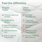 Mattress Topper Queen Viscose Viscose Made from Bamboo Pillow Top Mattress About this item: ULTRA SOFT: Niagara Queen Mattress Topper is made from viscose made from bamboo fiber and fits mattresses 8-20 inches deep. The mattress topper queen is 60x80 inches in size, gentle on sensitive skin, and ultra-soft. MACHINE-WASHABLE: The queen matress topper is safe for washing machines and has no harmful chemicals like latex or formaldehyde. The queen bed pad is easy to put on and won’t slide off. CLOUD-LIKE SLEEP: This queen mattress topper adds an extra cushion to potentially ease back pain. The back support mattress topper queen is also cool and sweat-absorbent for extra comfort EASY TO USE: The pillow top mattress topper queen has a deep pocket, is easy to put on, and has extra-length stretchy sides for thick mattresses. The queen topper is machine-washable and is fluffy after drying.