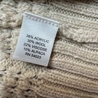 This Banana Republic cardigan is a cozy and stylish option for petite women. Made from a blend of viscose, alpaca, wool, and acrylic in a cable-knit pattern, this long-sleeved sweater features a collared neckline and dolman sleeves for a comfortable fit. The beige color and classic design make it suitable for various occasions, including business, casual wear, travel, work, parties, and even weddings. This versatile piece is ideal for all seasons and can be hand washed for easy care.
