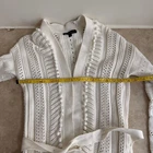 This cardigan is such a cute find! The open knit design is perfect for layering, and the pom-pom fringe adds a playful touch. It’s in great pre-owned condition—no flaws at all. The belted waist gives it a flattering fit, and the white color makes it super versatile. Love that it’s lightweight yet stylish. Perfect for spring or summer evenings! Would definitely recommend.