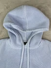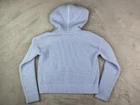 Elevate your wardrobe with this stylish Banana Republic Women’s XS Cropped Sweater Hoodie in Davenport Blue. Crafted from a cozy blend of polyester and cotton, this ribbed-knit pullover features a tie neck, long sleeves, and a hood for extra warmth. The solid colored sweater is perfect for travel and casual occasions, and can be easily cared for with machine washing. Some light staining, shown in photos. This classic fit sweater is heavyweight and stretchy, making it perfect for the winter, fall, and spring seasons. The preppy and colorful design is perfect for adding a touch of elegance to any outfit. This sweater is a must-have for any fashion-forward woman's collection.