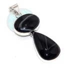 Banded Black Onyx 925 Silver Plated Gemstone Pendant 2.2" Exquisite Jewelry JW