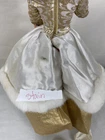 This product is a lot of two Barbie dolls dresses; one in gold and white the other in maroon and silver. Winter Fantasy gowns, along with a 1994 Barbie Hallmark Keepsake Holiday Ornament are complementary to any collection. The dresses are compatible with a 12in size doll/Barbie and are original, licensed reproductions from the Barbie Holiday product line. The gowns are made of cloth, the ornament is plastic, and glitter, and the ornament is in its original packaging. The lot is perfect for celebration occasions and features lightweight dolls with a fashion doll type. The dolls are from the 1990-1999 time period and were manufactured in Indonesia. See pictures as they are part of the description. More pictures available. Sold as is.