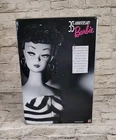 Celebrate a milestone in toy history with the Barbie 35th Anniversary Brunette doll, a charming reproduction of the 1959 original. This special edition doll, numbered #11782 and manufactured in 1993, comes new in box, preserving the timeless beauty and elegance that Barbie has been known for over the decades. With dark brown hair and a light complexion, this 11.5" fashion doll is dressed in removable attire, showcasing the sophistication of the era and the quality craftsmanship of Mattel. Included in this set are the doll and its accessories, all presented in the original, unopened packaging. This collectible Barbie, a part of the Anniversary Dolls product line, is a must-have for enthusiasts and collectors. It's not just a toy; it's a piece of history that captures the essence of fashion and beauty across generations. Whether for display or play, this Barbie is a treasure for anyone who appreciates the blend of nostalgia and style.