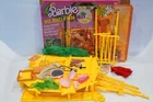 This listing is for a used Vintage Barbie Island Fun Hut Playset #4414. This set is nearly complete, which only a few accessories missing, like the hairbrush, comb, perfume bottles, and hairspray can. Some extra accessories are included. Please note that one of the pegs on the posts is broken, which can be seen in the photos. Also, the green grass cover has become brittle and displaces fibers. It will be plaecd in a separate bag. The original box is included as well. Don't pass up the opportunity to purchase this item for a great price! The item will be packaged securely to prevent damage. Shipping is free to anywhere in the United States. International buyers, please contact me regarding shipping, as prices vary by country. I accept payment by Paypal only. I only accept Paypal from users with CONFIRMED ADDRESSES. The item will be shipped on the same or following day that the payment is received, depending on the time that it is received. Winning bidder must send payment within 5 days. Please feel free to message me if you have any questions.
