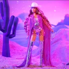 Introducing the Barbie Fashion Frontier doll, a limited edition collector's item from the Barbie Signature Black Label series. This beautiful 12-inch fashion doll features wavy curls and blue eyes, with a light complexion and multicolor highlights. The doll comes with a stand, outfit, and authenticity certificate, and is packaged in its original unopened box. Created by Taylor Pierce, this Barbie doll is perfect for all occasions and is a must-have for any Barbie collector. It is made of high-quality materials including polyester, plastic, PVC Eva Abs, spandex, and vinyl. This doll is not only a great addition to your collection but also a perfect gift for teens and adults alike.