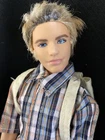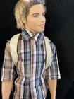Barbie Ken Doll Mattel 2009 Blond Hair Blue Eyes Straight leg Timberland skateboard backpack real hair