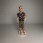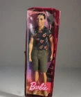 Barbie Fashionista Doll #4 Floral T Shirt, green shorts and tan shoes. Doll has been secured to new cardboard backing and repackaged in an authentic Barbie Plastic Case. Doll had never been played with. Original packaging too damaged for resale.