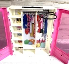 This Barbie Wardrobe Closet is the perfect addition to any doll bedroom. It is designed to hold Barbie dolls and accessories, and is made of durable plastic material in a beautiful pink color. The wardrobe is an original, licensed reproduction and is compatible with 12 inch dolls. It is ideal for storing clothes and other items, and will add a touch of fun to any Barbie collection. The wardrobe is not antique or vintage, but it is perfect for modern Barbie doll enthusiasts. Get this Barbie Wardrobe Closet today and add a cute and functional touch to your doll collection!