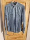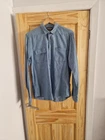 Pit to pit - 20 inches Length - 26 inches Crafted for the style-conscious individual, the Barbour International Denim Casual Shirt is a versatile addition to any wardrobe. The medium size ensures a slim fit, while the long sleeves and collared neckline offer a classic silhouette perfect for any casual occasion. Its solid medium blue hue is easy to pair with a variety of bottoms, making it a go-to choice for those who appreciate simplicity and quality. The shirt is made from a breathable cotton blend, which provides comfort across all seasons. Embroidered accents and button details add a touch of sophistication to this machine washable piece. Whether you're out for a casual meet-up or enjoying a laid-back day, this Barbour denim shirt will keep you looking effortlessly put together.
