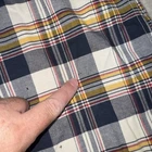 Some small holes on the front. See pics. This Barbour button-up shirt in a mix of plaid colors is a great addition to any men's wardrobe. The tailored fit and 100% cotton material makes it comfortable to wear all day long. Its button-down collar and long sleeves add to its stylish look. The shirt is perfect for casual occasions and can be dressed up or down depending on the occasion. The shirt is in excellent condition and ready to be worn and loved by its new owner.