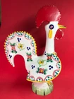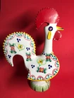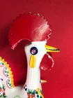FROM MADEIRA WITH LOVE....! Found in an estate liquidation on the island of Madeira in Portugal, that of a retired antiques dealer. Large hand painted vintage ceramic rooster, considered the unofficial mascot of Portugal. This is a vintage example, larger than most, standing 11 inches tall. I inserted a standard size playing card in one photo as a reference for size. The condition is good, free of chips, cracks or repairs. Some crazing in the glaze was detected. The red comb and red throat wattles are cold painted. Those areas are showing some spotty wear with some losses, see photos. There is no back stamp, however, it has been identified as a "Barcelos Rooster" symbol of Life and Good Luck, made in Portugal by the Alcobaca Factory. Almost every Madeiran Household will have a rooster figure represented in one form or another, often given as a house warming gift. This is a hand crafted item and will show some manufacturing crudities, atypical for this type of ware. MUCH OBLIGED