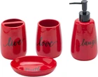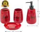 Bathroom accesory Set, Ceramic, 4pc,Toothbrush Holder soap Dispenser soap Dish Tumble Cup for Bathroom Decor and Gift (Navy) (RED) Included Components soap dispenser, toothbrush holder, tumbler cup, dish Ceramic 4 piece red ceramic bathroom accessories set includes liquid soap/lotion dispenser, toothbrush holder, tumbler cup, and soap dish Use the pump dispenser for lotion, liquid soap or hand sanitizer Organize your bathroom essentials with easy and keep your bathroom counter clean, tidy and orderly Simple clean shape with encourage quote on bathroom set will compliment any bathroom setting while providing a consistent style for your bathroom countertop storage, gifts