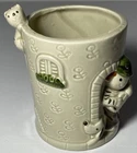 Bathroom Toothbrush Hold By Andre Richard "Andre Jr." Hand Painted Dog/Cat/Child. 3” tall by 2 1/2” wide.