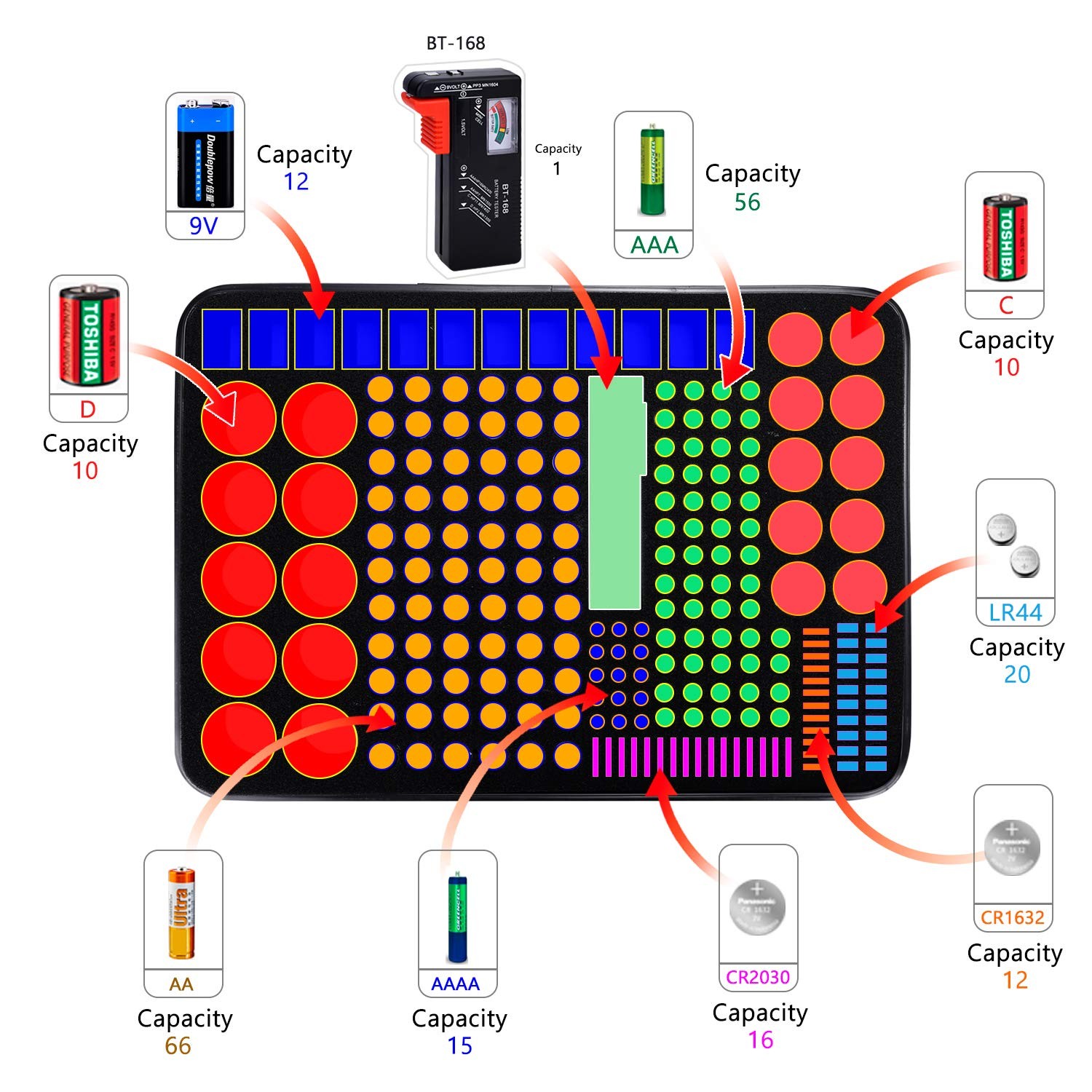 Contact Us Add to Favorite Well come to Store Contact Us Fast Shipping Hassle Free Return eBay Money Back Guarantee Authenticity Guarantee Battery Organizer, Fireproof Battery Organizer Storage Case with Tester (BT168),Water-Resistant Explosionproof Battery Holder Box with Cover and Zipper, Holds 220+ AA AAA C D 9V Batteries Features Power Source Battery Powered Style Handheld Color black Item Weight 600 Grams Item Description FIREPROOF EXPLOSION PROOF WATERPROOF: Fireproof battery organizer storage box is made of high quality non-itchy silicone coated fiberglass which stands up the temperature up to 2000℉. Fireproof and explosion-proof materials will keep your batteries 100% safe. We designed this fireproof battery box to minimize the danger and loss caused by battery explosion.It will be an ideal great Chirstmas gift for your family or friends. For more type batteries: 13.4*9.5*3 inches size. It can hold 66*AA, 56*AAA, 10*C, 10*D, 12*9V,15*AAAA, 48*Button type batteries( 3V lithium - CR 2032,CR 2016,CR 1632, CR 2025,LR44. Duracell - 1616/ 2025/ 2032/ 2016), total over 220 batteries. Fireproof battery organizer bag also comes with two zippered pockets for easy storage of Battery Tester and other types of batteries(CR2,CR123A,23A), perfect for Energizer Alkaline Batteries, ACDelco, Panasonic, Duracell batteries. SAFELY STORES BATTERIES:Our fireproof battery organizer bag features a double zipper and durable handle to keep batteries from shock. In the event that a defective battery were to swell, leak, or explode our bag is designed to contain this and keep your family safe. Batteries are securely held in well organized foam cutouts,this prevents accidental contact between batteries from causing a fire or explosion, and it also makes it easy to find the right battery! SAFE & LIGHTWEIGHT & PORTABLE: Not only can you safely hang the battery bag on the wall, in the storage room, in the drawer or anywhere away from the fire, you can also take it to travel and various outdoor activities.Of course, giving it as a gift to your family, customers or employees is also a good choice.(The cut foam is retained inside,so it may take some time to remove it,but it won't deform the internal foam,which is why we designed this approach) Note - Includes a battery tester, Does NOT include any batteries. Our fireproof battery case has been tested by SGS (world's TOP test company), and met the highest requirement of UL94 VTM-0 Certified and ROHS IEC62321 Certified. About us Customer service is our top priority! Please be sure to read the description thoroughly to make sure that this is the item you want before making a purchasing decision. If you have any questions about this item, please contact us via eBay messages before placing your order. We make every effort possible to accurately describe and depict the items. Please be aware that slight variations in color may be due to differences in lighting and computer monitor resolutions. All items are in stock at the time of listing; however, in the unlikely and unforeseen event that we are unable to fulfill your order through any of our networked warehouses, we will notify you as quickly as possible and offer you a 100% refund on your purchase. Thank you for shopping with us. We appreciate your business! Payment PayPal is our preferred method of payment. If you do not have a PayPal account, all major credit cards are gladly accepted through PayPal as the payment processor. PayPal offers great buyer and seller protection. Your order will be processed pending receipt of cleared payment through PayPal. Sales tax may be charged depending on your location. Shipping We provide fast, free shipping. Most items are shipped within 3-10 business days of receiving cleared payment. We ship to the lower 48 contiguous United States only. We do not ship to P.O. Boxes or APOs. For select items, we ship internationally through eBay?s Global Shipping Program. We do ship most of our smaller items internationally using eBays Global Shipping Program. If ordering electrical items outside of the U.S., please note that they will come equipped with a standard U.S. voltage plugs. You will need a suitable adapter to use the item in your country. Certain restrictions apply. Standard or Economy Shipping is ALWAYS FREE! You will be notified via eBay messages as soon as your items ship. Special Notice for Freight Items: If an item ships via Freight (Truck) Delivery, a valid phone number will be required so that we can contact you to schedule delivery. The item may be delivered with curbside delivery. An adult signature will be required. Please be sure to have available help on hand to assist you with moving the item to the desired location in or outside of your home. Freight items must be inspected upon delivery. In the unlikely event that damaged is observed, you MUST refuse delivery and note the damage on the shipping receipt and send it back via the Freight carrier. Returns will not be accepted on Freight items after they have been delivered, inspected, and the driver has left the premises. Returns We offer a 30 day return/exchange policy for most of our products. You can request a refund if you are dissatisfied for any reason with your product. (Restocking Fee May Apply). Only factory defects are accepted as a reason for a return. In the case of factory defects, if available, we will replace the product for you. When returning an item, it must be in all of the original packaging and include all of the original accessories or items that came with it. The item and package should be in original and perfect condition. You will be required to cover shipping on the return of non-defective items. All returns MUST be done within 30 days of date of purchase. Please note that we cannot give refunds or replacements after the 30 day limit has expired. When sending in a return, please note that it can take up to 7 business days for the return to be processed. We do our best to process as quickly as po