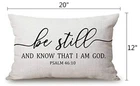 Return Policy Fast Delivery Trusted seller Be Still and Know That I Am God - Psalm 46:10 - Bible Verse Lumbar Throw Pillow Cover 12x20 Inch Decorative Bedroom Living Room Rectanglar Cushion Case for Bed Sofa Couch Product Description Cotton Linen Size:12 x 20 inches/30 x 50 cm.Please allow 1-2cm deviation because of hand-cutting and sewing. This pillow case covers with invisible zipper improves the apperance. Just cushion cover,pillow insert are not included Gift & Decor: Great Gift for Friends or Family on Any Holiday, Matches with Any Color Bed, Couch, Sofa, Car, Or Chair. It’ll be the Perfect and Simple Decorations for Living Room and Bedroom. Shipping Returns Payment Shipping Shipping is FREE to all addresses other than APO/PO boxes in the lower 48 states. All our stock ships from US-based warehouses. Shipped via USPS or UPS (depending on location and package weight) Unless stated otherwise, all orders will ship within 24-72 hours of your payment being processed. Check our feedback to see the great reviews of FAST shipping we offer. Returns Seller does not accept returns Payment We currently accept payment via eBay managed payments only. Once payment is cleared, we will dispatch your shipment within 1-3 business days. Please refer to the "Shipping" tab for more information regarding shipping speed to your destination.