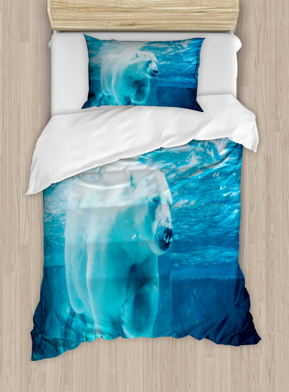 Bear Duvet Cover Set King Size Arctic Polar Underwater with 2 Pillow Shams Time to embrace modern looks, feel-good fabrics, and high-quality materials! King, queen, or twin - these 3 pcs duvet cover sets will work in any bed for any season! Woven from 100% brushed microfiber fabric, our duvet cover collection is constructed for maximum strength and ultra comfort only for you and your beloved ones. All you need to do is to simply put our duvet cover on your comforter and secure it with zipper closure, and enjoy your new bedding set! MEASUREMENTS: KING SIZE SET: Duvet Cover (104" W X 88" L) and 2 Pillow Shams (36" W X 20" L). QUEEN Size Set: Duvet Cover (88" W X 88" L) and 2 Pillow Shams (30" W X 20" L). Twin Size Set: 1 TWIN Duvet Cover 68" X 88" + 1 Pillow Sham 30" X 20". The duvet cover FEATURES hassle-free hidden zipper and the pillow shams have an envelope closure. Please note that COMFORTER NOT INCLUDED IN THIS SET. This only duvet cover, allowing you to protect the comforter/duvet insert from dust, mites, and other stains. WRINKLE FREE - The microfiber material creates ultimate softness and comfort, also provides wrinkle, fade, and shrink resistance when properly cared for. Very durable and sustainable material that will not endanger your health or the environment, either. No chemicals used, No dye substance harming the health of you or your family, %100 microfiber recyclable environmentally friendly fabric. LOW MAINTENANCE: Machine washable in cold water. Suitable for tumble dryer use on low heat. Can be ironed on medium heat when necessary. Do not bleach. Choose your style between thousands of different and creative patterns. Or simply find your perfect gift idea ever for housewarming, birthday, bridal shower, Christmas, Mother’s Day, and newlyweds… You can find a theme for everybody and every interest in our Ambesonne Store. The images we display have the most accurate color possible but, due to differences in pc monitors, there can be slight color differences between the product and the image. Due to manual measurement, please kindly allow 1-2 cm discrepancy. The Duvet Cover and Pillow Shams are printed on the FRONT SIDE ONLY, the back of them are PLAIN WHITE-COLORED. This is ONLY the Duvet Cover, sold WITHOUT the Comforter.