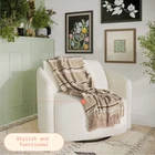 Welcome to Beautiful By Drew, where comfort meets style. Introducing our Porcini Cozy Chenille Throw, a luxurious addition to your home decor. Crafted with detail, this throw features fringe detailing that adds a touch of sophistication to any space. With a generous weight, the throw ensures optimal warmth and coziness. Measuring 50" x 60", it's the perfect companion for chilly nights or as a stylish accent for your favorite chair or sofa. Elevate your relaxation experience with the newest throw from Beautiful By Drew Barrymore. Luxurious Comfort: Immerse yourself in unparalleled coziness with our Brown Cozy Chenille Throw, boasting a substantial weight for a truly indulgent experience. Measures at 50" x 60" Durable Blend: Enjoy the perfect combination of durability and softness with our throw's blend of 30% polyester and 70% acrylic, ensuring lasting quality and a plush feel. Neutral Colorway: The calming blend of earthy tones makes for a versatile, place-anywhere piece. Designed for any adult home