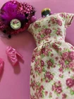 Beautiful Barbie short Flowered knit dress matching fedora shoes