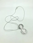 This beautiful seashell shaped locket is a perfect addition to your jewelry collection. The silver tone long chain of 20 inches complements the unique pendant shape, which is designed to hold two photos of your loved ones. The lobster closure ensures a secure fit and easy wear. The chain type is a beautiful serpentine design, and the necklace length is perfect for a statement piece. The necklace is ideal for those who love nature, beach, and fashion. The main stone is not included, making it a versatile piece for any occasion. This item is used and may show signs of cosmetic wear. It comes with what is shown in the pictures. No other items are included. If you have a question or concern, please let us know and we will work with you to address the issue. All products are cleaned and sanitized. We strive for excellent customer service and stand behind our products.