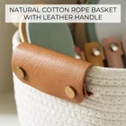 Upgrade Everyday Living with ZICOTOs' Versatile Cotton Rope Baskets: Perfect for Chic Organization Throughout Your Home! ZICOTOs’ modern cotton rope storage basket set - designed to bring order and beauty wherever you place them. The stylish organizers are your go-to for banishing clutter with a touch of flair. Whether it's your nursery, bathroom or office, the storage baskets for shelves & more make it a joy to find a place for everything, effortlessly turning chaos into organized bliss. Brighten up your decoration effortlessly with the beautiful cotton rope baskets. Their stylish colors complements any interior, from modern living rooms to cozy nurseries. The woven baskets for storage come in a set of five different sizes. Use them as bathroom storage bins, as a changing table organizer, for neat nursery organization or to tidy up your office and home-schooling essentials. Sizes are: 11.8x7.8x4.3", 10.6x7.1x3.9", 9.8x6.3x3.5", 9x5.9x3.3", 7.8x5.1x2.6". The lightweight and sturdy organizing baskets are super practical and also a chic eye-catcher. Whether you're arranging toys in the nursery, tidying your desk, or organizing toiletries in the bathroom, the basket set effortlessly integrates into your daily routine. Natural Beige Decoration: Enhance your décor with the stylish woven baskets for storage, crafted from natural cotton rope. These baskets for organizing add a modern touch of sophistication to any room, whether it's the living room, bathroom, nursery, or office. Organize with Elegance: Upgrade every space with ZICOTOs’ set of 5 organizing baskets. Ideal for nursery organization, bathroom basket storage, and more. Effortlessly transform cluttered areas into neat, stylish spaces. Welcome to a beautifully organized home! Perfect Sizes for Every Need: The storage basket set features five different sizes – all with leather handle. Ideal as bathroom storage bins, a changing table organizer or for office essentials. Fun, functional - and fabulous! Versatile and Practical: Ideal for nursery organization, desk tidying, or bathroom storage, these cotton rope baskets help maintain order. To protect the cotton fibers, wipe with a soft, damp cloth. Washable at 89F. Durable and Safe Material: Made of natural cotton rope, the beautiful storage baskets for shelves & co. are durable and lightweight. Your premium, efficient storage solution with leather handles, perfect for home and office use!