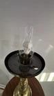 This is a vintage desk lamp crafted from brass in a mid-century modern style. It is an electric lamp that exudes an antique charm. Perfect for collectors or those looking to add a touch of vintage flair to their living or office space. It has an absolutely beautiful milk glass globe there is a small chip in the globe but you cannot see it when the globe is on the lamp. The lamp is heavy and stands approximately 3ft high.