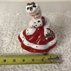 She is beautiful! There are a few missing rhinestones on her dress. Her foot has sone missing paint but it is not chipped. Sone missing red paint in tiny miniature spots bit overall awesome! I will package carefully so she doesn’t get broken or cracked in shipment.