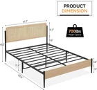 About this item RATTAN HEADBOARD - Skillfully made from premium natural rattan material, the rattan headboard of this stylish bed frame enhances the bedroom's overall aesthetic appeal. Its organic texture and warm tones imbue the space with a serene sense of tranquility and natural beauty, fostering a cozy and welcoming ambiance that promotes rest and relaxation. REFINED DESIGN - The ratten bed frame's headboard boasts rounded corners, infusing a gentle touch to amplify the overall aesthetic appeal with its thoughtful and comfortable design. The cylindrical legs taper gracefully downwards, crafting a beautiful and harmonious structure that complements a variety of bedroom styles. STURDY AND DURABLE - Constructed with high-quality MDF wood panels and sturdy solid metal support frames, this rattan FULL bed frame with headboard is designed for lasting durability. The center double row of support bars, along with seven support legs, ensures optimal support for various mattress types. With a weight capacity of 700 lbs, this bed frame offers both strength and stability for a comfortable and secure sleeping experience. SILENT SLAT SYSTEM - The silent slat design minimizes noise, providing you with a tranquil sleeping environment free from squeaks or creaks, allowing you to fully embrace a restful night of peaceful slumber. CONVENIENT ASSEMBLY - Your assembly experience is made effortless with the inclusion of all necessary accessories and detailed instructions in the package, ensuring a smooth and hassle-free setup process from start to finish. With user-friendly guidance and complete accessories provided, you can quickly and easily assemble your new bed frame without any unnecessary complications. Product Description BOHEMIAN RATTAN BED FRAME Skillfully made from premium natural rattan material, the rattan headboard of this stylish bed frame enhances the bedroom's overall aesthetic appeal. Its organic texture and warm tones imbue the space with a serene sense of tranquility and natural beauty, fostering a cozy and welcoming ambiance that promotes rest and relaxation. ROUNDED CORNER DESIGN RATTAN HEADBOARD NOISE-FREE DESIGN Style Boho Color Natural Color Material Rattan, Metal, MDF Size Queen / Full Included Components Headboard, Slat, Footboard Max. Load Capacity 700 LBS Payment Delivery details Terms of sales About us Contact us Payment We accept payment either via PayPal or any of the following credit cards; Visa, MasterCard, Discover, and American Express. Wishing you a happy life! Delivery details We will provide you with the tracking number on the same day or the next day, and transport your package through UPS, DHL, FedEx and other courier methods. If you have any questions, please feel free to contact me and I will do my best to help you solve the problem. Wishing you a happy life! Terms of sales We offer a one month free return and exchange service, and you don't have to bear any losses. We will provide multiple solutions for you to choose from. If you have any questions, please feel free to contact me and I will do my best to help you solve them. We offer a two-year warranty period. If you have any quality issues with the product you purchased within two years, please feel free to contact me. I will provide you with a free replacement service. If you have any questions, please feel free to contact me. I will do my best to help you solve the problem. Wishing you a happy life! About us We are committed to becoming the best eBay seller, with high-quality suppliers, providing the most sincere service, including pre-sales and after-sales service, to give you a satisfactory shopping experience. If you have any questions, please feel free to contact me, and I will do my best to help you solve the problem. Wishing you a happy life! Contact us If you encounter any problems, please contact me by email at the first time, I will provide you with a solution as fast as possible so that I can give you a satisfactory shopping experience, wish you a happy life! Brand GarveeHome Compatible Mattress Size Full Frame Material Metal Type Bed Frames Features No Box Spring Needed Color Oak Color Finish Powder Coated Room Bedroom Country/Region of Manufacture China Manufacturer Warranty 5 Years Item Weight 67.57 Pounds Item Length 78.5"L x 55.4"W x 43.3"H Item Height 78.5"L x 55.4"W x 43.3"H Item Width 78.5"L x 55.4"W x 43.3"H Footboard Height 12.6 Headboard Height 43.3