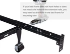 Return Policy Fast Delivery Trusted seller Bed Frame Footboard Extension Brackets Set Attachment Kit - Fit for Twin, Full, Queen, or King Size Beds Product Description Function : The footboard extension brackets are use for attaching to headboard-only style bed frame to allow the attachment of bolt-on footboard,or for extending the footboard.Fits Twin, Full, Queen and King size bed frames;length adjustable Material : The bed frame extenders are made of superior steel, 20% thicker than others,to reduce unnecessary wobble.With baking finish surface,not easy to deform and rust Package Contains : 2 Footboard extension brackets,6 Bolts,6 Locking Nuts,1 wrench,6 nut protection caps,6 Flat Washers Size : 16"L x 2"W x 4"H. 0.1" thickness Installion : Easy to install, just adjust the length you wanted and tighten the screws to complete the installation.Our product has seven installation holes of different sizes to match various bed frames.However,if your bed frame does not have holes or does not match the holes in the extension rails, you may need to drill holes in the bed frame for mounting Our bed extension brackets have seven different sized holes to match a variety of different bed frames, please refer to our size chart (Fourth Image)and make sure to measure the hole size of the bed frame to match our bed frame extension brackets before purchg Shipping Returns Payment Shipping Shipping is FREE to all addresses other than APO/PO boxes in the lower 48 states. All our stock ships from US-based warehouses. Shipped via USPS or UPS (depending on location and package weight) Unless stated otherwise, all orders will ship within 24-72 hours of your payment being processed. Check our feedback to see the great reviews of FAST shipping we offer. Returns Seller does not accept returns Payment We currently accept payment via eBay managed payments only. Once payment is cleared, we will dispatch your shipment within 1-3 business days. Please refer to the "Shipping" tab for more information regarding shipping speed to your destination.