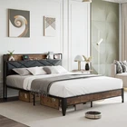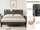 Full Queen King Size Bed Frame, Storage Headboard with Charging Station, Solid Metal Frame, Noise Free, No Box Spring Needed, Easy Assembly 🛏️ Specifications: Brand:Jojoka Color:Brown Material:Metal,MDF Board Size:Full / Queen / King Size Full Size: 81.5"L x 53.9"W x 41.3"H Queen Size: 86.2"L x 62.2"W x 41.3"H King Size: 86.2"L x 78"W x 41.3"H Max. Weight Capacity:1200 lb Recommended Mattress: 8"-10" 2 AC Outlets: 100V/2A 2 USB Ports: 5V/2A Power Cord: 6-foot Special Feature: Charging Station, Soft Linen, Storage Shelf, Metal Slats Support, Noise Free, No Box Spring Needed, Easy Assembly Please Note:Mattress not included! 🛏️ Features: 👍【Charging Station & Storage Shelf】Featuring 2 plug outlets, 2 USB ports and 6 ft long power supply within arm's reach, keeping your devices charged and organized has never been easier. The 4" width storage shelf provides additional space for phones, glasses, books or any, adding more convenience. 👍【Sturdy & Silent Support】Upgrade to a bed frame that promises not just support but serene sleep. Our heavy-duty metal frame and uniquely designed angle iron legs provide robust stability for up to 1,000 pounds, while the EVA material minimizes slat friction. It's strength meets silence in every restful night. 👍【No Box Spring Need】Forget the hassle and expense of traditional box springs. Our slat system welcomes mattresses of 8 - 14 inches in height directly, offering a practical and versatile base that caters to a wide array of mattress types. It's the modern way to lay your mattress and lay down to rest. 👍【More Storage Space】Don't let clutter disturb your peace. Using the 11" under-bed space for stowing away everything from shoes to off-season outfits or even your suitcase. This bed frame doesn't just elevate your sleep; it elevates your storage solutions. 👍【Assembly Made Easy】Our bed frame comes with all necessary hardware, tools, and a crystal-clear illustrated manual. Parts are labeled for convenience, turning assembly from a chore into a simple task. Get ready to enjoy more time resting and less time stressing. Box Spring Optional Storage Shelf & Charging Station 2 Standard Plug Outlets & 2 USB Ports, charge all electronic devices at any time with easy access. 4" Storage Shelf keeps the essentials within easy reach, glasses, remotes, and phones stuff can be perfectly placed and nicely organized Noise-Free Design The EVA Mute Bar can eliminate the friction between the metal frame & metal slats, provide cushioning resulting in noise-free use The metal frame's Reinforced Screws ensure that the bed frame is free from shaking. No wiggle, no noise. Sturdy Metal Legs Heavy-duty Metal Legs reinforce the sturdiness and durability of the full platform bed structure. Providing optimum support for all types of mattresses without needing a box spring. Hold up to 1000lbs 📦 Package Included: Bed Frame Installation Tool User Manual 🏙️About us Worried about not finding your ideal furniture?Let's unlock all your worries!We are a large and competent e-commerce company with more than ten warehouses in the US.We have provided millions of products for our customers!Our brand is dedicated to providing our customers with high-quality, uniquely designed, and well-crafted products at affordable prices.We have many storage products as wardrobes, shoe cabinets, lockers, etc. We also have different furniture for you to choose from, giving you an ideal solution to decorate your home. 🚚 About Shipping After receiving payment, we will process your order within 1 working day (excluding weekends),and it will takes about 5-10 days to arrive. ☎️After Sales All items will be strictly inspected before being shipped,but we cannot determine what will happen to them during transportation.We hope that all our buyers can receive complete package.If you have any questions when receiving the items,please feel free to contact us at any time and we will do our best to solve the problem for you.