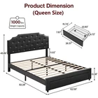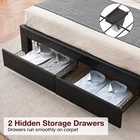 Jojoka Full Queen Size Bed Frame with 2 Storage Drawers, Upholstered PU Leather Headboard and Footboard Platform , Wooden Slats Support, No Box Spring Needed, Easy Assembly, Black 🛏️ Specifications: Brand:Jojoka Color:Black Material:Metal,MDF Board,PU Leather Size:Full / Queen Size Full Size:77.55"L x 56.29"W x 45.86"H Queen Size:82.28"L x 62.59"W x 45.86"H Size of Drawers:22.83"L x 15.74"W x 4.72"H Max. Weight Capacity:1000 lb Item Weight:61 lb Special Feature:With PU Leather Upholstered Headboard,2 Storage Drawers,Sturdy and Durable,Easy Assembly Please Note:Mattress not included! 🛏️ Features: 👍 【 Bed Frame with 2 Storage Drawers】 This platform bed frame includes 2 spacious storage drawers, perfect for storing sheets, clothes, bedding, toys, and more. Each drawer is equipped with 4 smooth wheels, making it easy to access your items while making your room cleaner and tidier. 👍 【 Comfortable and Stylish】 The inside of the headboard is equipped with high-resilience sponge, which is very comfortable when you lean on it while reading a book or watching a TV show. The headboard has a pull-button design that perfectly matches any bedroom style. 👍 【 Sturdy and Durable】 Made from sturdy wood slats, this storage bed features 12 wood slats, 9 support legs, and a 1000-pound weight capacity to ensure stability and durability. 👍 【 Noiseless Design】 The steel frame inside the bed frame is covered with sound-absorbing cotton, and all slats are fixed with Velcro nylon straps to reduce friction between the slats, steel frame and mattress, minimize noise and provide comfortable Sleep sleep environment. Enjoy a peaceful sleep experience. 👍 【 Easy to Install】 Each part of the bed frame is numbered, and the package comes with installation instructions and tools to help you complete the installation quickly. If you have any questions during installation or use, please contact us immediately and we will provide you with a satisfactory solution. Bed Frame with 2 Storage Drawers, Platform Bed Frame with Upholstered Headboard The bed frame's upholstered headboard contains high-resilience foam, complemented by delicate button design, showcasing an elegant decorative effect. 2 storage drawers are designed under the bed, providing convenient space to store clothes, shoes, and other items. High Elastic Sponge The headboard is made of high-resilience foam, providing you with a more comfortable backrest experience. Additional storage space Two storage drawers located under the bed, convenient for storing items and effectively utilizing space. Wheel Design Each storage drawer is equipped with four wheels, making it convenient for moving and using. 📦 Package Included: Bed Brame Installation Tool User Manual 🏙️About us Worried about not finding your ideal furniture?Let's unlock all your worries!We are a large and competent e-commerce company with more than ten warehouses in the US.We have provided millions of products for our customers!Our brand is dedicated to providing our customers with high-quality, uniquely designed, and well-crafted products at affordable prices.We have many storage products as wardrobes, shoe cabinets, lockers, etc. We also have different furniture for you to choose from, giving you an ideal solution to decorate your home. 🚚 About Shipping After receiving payment, we will process your order within 1 working day (excluding weekends),and it will takes about 5-10 days to arrive. ☎️After Sales All items will be strictly inspected before being shipped,but we cannot determine what will happen to them during transportation.We hope that all our buyers can receive complete package.If you have any questions when receiving the items,please feel free to contact us at any time and we will do our best to solve the problem for you.