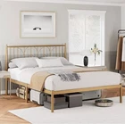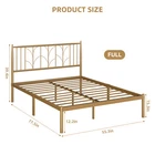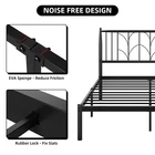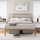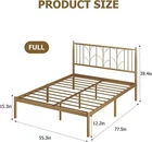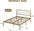 About the item: Sturdiness comes first: With the massive mattress support provided by 12 metal slats, this golden bed frame can hold up to 1000 pounds of weight. No box spring required. Noise-free sleep: Unique rubber lock and EVA foam will reduce friction and avoid the noise of all activities. Quiet sleep brings you a beautiful experience. Say goodbye to clutter: The 12" under-bed height provides additional storage space to maximize the storage space in your home. More space, less mess. Elegant style: The leafy shape with rounded columns gives your room a modern and stylish feel. Can match with any decoration style. Quick assembly: Includes all parts, instructions and tools needed. 30 minutes to assemble, saving you time and hassle. Sturdy Metal Frame Sturdy metal frame with outstanding weight-bearing capacity for great stability and durability. Vintage Design The retro headboard and footboard are in perfect match with other furniture. Noise-free With the EVA foam on the slats, you will have a quiet sleep without noise. Rubber Lock The unique rubber lock design helps stabilize the bed frame and prevent noise. Under-bed Storage 12.2 inches of clearance space under the bed, spacious to meet your storage needs. Metal Supports 14 metal slats provide you with 880lbs of support. Protective Foot Pads Anti-slip foot pads reduce scratches and slides. Sink Design The mattress fits perfectly into the frame and effectively prevents your mattress from sliding. Specification Available Size Full/Queen Available Color Black/Gold Full Dimensions 77.5”D x 55.3”W x 39.4”H Queen Dimensions 82.5”D x 61.3”W x 39.4”H Weight Capacity 880lbs Material Metal Box Spring Required No Assembly Required Yes Package include: 1x Bed Frame