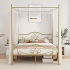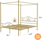 Product Description Feature: 【Elegant Canopy Bed】: This full bed frame features with clean full metal lines and elegant headboards and footboard. Upgraded design with four posts and canopy top, allowing for customization with decorative curtains and lights which add an romantic decoration for your room. 【Sturdy &Durable】: The platform bed frame is designed 16 heavy duty metal slats and 10 supporting legs to offer strong support and ensure the durability of the frame. Do not require additional foundation or box springs, keeping your mattress fresher longer. 【Ample Under-bed Storage Space】: The canopy bed frame with 11.2 inch ample under-bed clearance offers plenty of space to store toys, books, and more, keeping the room tidy and clean. The anti-slip foot pads are used for better floor protection. 【Easy Assembly&Remove】: The easy-to-follow instructions and included tools allow for a quick and hassle-free setup within 45 minutes. Every part is clearly labeled and numbered, saving your time and effort. 【Full Size Canopy Bed Frame】: 77.95"x 56.1" x 77.5"(L*W*H),Canopy poles height: 77.5inch. The size of your mattress or curtains should base on the above size.A modern and stylish adding to any room. Ideal for kids,teens and adults. Description: Size: Full Dimensions: 77.56"L x 55.91"W x 76.38"H Special Feature: Under Bed Storage, No Box Spring Needed, Metal Four Poster Canopy Bed Color: Bright Gold / Dark Black Finish Type: Powder Coated Material: Metal Style: Modern Maximum Weight Recommendation: 400 Pounds Item Weight: 60.4 Pounds Package Includes: 1 * Bed Frame (according to buyer's choice) 1 * Instruction Note: 1. Package information is different for different choices, please check and confirm the product information. We ship according to the buyer's choice. 2. Only bed frame, not including mattress. Payment We accept Payoneer/Paypal/Google Pay/Visa/Master Card/Amex/Discover for Payment Payment must be received within 7 business days of auction closing. We ship to ebay's address only. Please make sure your address in EBAY is matched with your shipping address before you pay. TOTAL AMOUNT DUE includes the final auction price plus S&H (Shipping and Handling). S&H will be determined based upon the ship to address. Shipping Policy Order will be handled within 2 working days( Excluding Weekends and Public Holidays) after your payment clear. We ship to Order Detail confirmed address ONLY. Transit times are provided by the carrier, exclude weekends and holidays, and may vary with package origin and destination, particularly during peak periods. Please obtain the RMA number & returned address for any return items. Return items MUST have all ORIGINAL packaging and accessories. We will replace items which are malfunctioning, for 60 days from the date you received.Items which have physical abuse are not covered by the warranty. Contact Us Please use the link "Ask the Seller Question" or send "eBay message" in you "My eBay" to contact us if you have problems, special requests or suggestions, we are very glad to help you anytime. we will reply you within 24 hour.