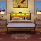 Bed Frame Full Size with Storage Headboard Industrial Metal Platform Bed Homieasy Full Size Bed Frame with Charging Station and LED Lights, Industrial Metal Platform Bed with Storage Headboard, Steel Slat Support, No Box Spring Needed, Noise-Free, Easy Assembly, Rustic Brown / Grey / Black About this item: Storage Headboard with Charging Station - The bed frame comes with two storage shelves on the headboard that is perfect for putting books, tissue box, lamps, etc. With the built-in charging station: 3 power outlets and 2 USB ports added for convenience, you can charge your phone or tablet without having to leave the comfort of your bed. Atmosphere Bed with Smart LED Light - Remote or APP control you can choose, and customize any color you like to match any interior theme and aesthetic. Meanwhile, it has a variety of modes like music sync, timer functions, etc, providing a great ambiance for whatever mood you are in. Durable Strong Metal Slats - The platform bed frame features an ultra-durable metal structure that provides more even support and can better distribute weight across the frame, don't warp or crack over time like wood slats can. No additional foundation or box spring is needed, just put your mattress on top of the steel-slatted platform directly, get a great night's sleep, it can support up to 800 lbs. Extra Storage Space & Easy Cleaning - Under-bed storage space can be a great solution for maximizing storage in your bedroom, with 11" of clearance space under the bed, there is plenty of room to stash your storage bins and shoe totes. And the platform bed frame allows sweeping robots to easily enter and exit. Easy to Assemble - All the assembly hardware and tools come with the bed frame. With detailed Illustrated instructions, it’s easy to assemble without professional assembly skills. Homieasy Bed Frame with Storage Headboard Bed Frame with Charging Station and LED lights Homieasy Bed Frame is a highly functional and innovative piece of furniture that combines stylish design with practical features. It offers convenience, comfort, and style all in one, making it a great addition to any bedroom. It is ideal for those who value convenience and comfort in their bedroom, and who want a bed that can meet their various needs. Built-in Charging Station The bed frame includes a built-in charging station, which enables you to conveniently charge your electronic devices without having to get out of bed. And it's equipped with two storage shelves that provide ample storage space. Under-bed Storage Space With 11” of clearance space under the bed, there is plenty of room to stash your storage bins and shoe totes. And the platform bed frame allows sweeping robots to easily enter and exit. Strong Metal Slats The bed frame is typically made of sturdy materials and is designed to support a mattress and provide a comfortable sleeping surface, don't warp or crack over time like wood slats can. Noise-Free Design The platform bed frame features an ultra-durable metal structure that provides more even support and can better distribute weight across the frame, with no squeaks. Specifications of Size: Color: Rustic Brown / Grey / Black Size : 81.7"L x 54.7"W x 39"H Material: MDF Headboard + Strong Metal Slats Box Spring Required: No Weight Capacity: 800 lb Package Content: Headboard, Bed Frame, Slats (Mattress not included) Payment Delivery details Feedback About us Contact us Payment You need to pay immediately, we will ship within 1-3 days after receiving the payment. All major credit cards are accepted through the secure paymen. Delivery details 1. Our item is located in US Los Angeles, New Jersey, Atlanta warehouse, so we will shipped out our item in 1-3 days. 2. Your order will be shipped within 1-3 business days upon full payment received. 3. We ship directly from our US Warehouse by F edEx / UPS , usually takes 1-8 business days , so you can receive your item very soon. Feedback 1. If you are satisfied with our service, please leave us Positive Feedback, and we will do the same for you. 2. If you have any questions when you install our product or received damaged, please just contact us, Homieasy customer support will solve all the problems for you in 24 hours, we believe that good communication will solve the problem. About us Homieasy is one of the most trustworthy high-end customized furniture supplier. We are committed to providing innovative, practical and premium-quality products at very competitive prices for thousands of customers. We introduced advanced high-tech production equipments, excellent designers and highly skilled workers, to ensure top technology, strong capacity, reliable quality and excellent service. Our design principle is to provide ergonomic comfort, valuable, versatile products on the base of unique and beauty. If you are looking for vanity desk, closet system, desks, bed frame, bookshelves, wine rack, tv stands, file cabinets etc, get our products with confidence. Contact us If you don't receive the item or have any after-sale problems, please just contact our customer service team on eBay or email us, and we will solve all the problems for you in 24 hours.