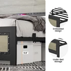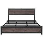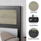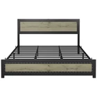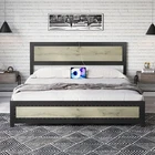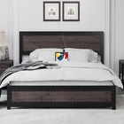 Product Description Bed Frame with Headboard Industrial High-grade MDF Board Charge Station Noise Free Design Introduction: 【Industrial Style Bed Frame with Headboard】 Combining vintage MDF panels with a black metal frame, this bed frame displays a gentle industrial and rustic style that blends perfectly into your home decor. The bed frame adds an elegant accent to your bedroom 【Bed Frame with Charging Station】 Equipped with a charging headboard with USB and Type C ports, this bed frame combines vintage style with modern technology, making it easy for you to charge your electronic devices on a daily basis, greatly enhanc 【Industrial Appearance】 The whole headboard is design to be unique and innovative and consists of three boards. The vintage gray industrial headboard and footboard 【Simple Assembly and Support】 All components and tools are clearly labeled in the instruction manual, making assembly straightforward and accessible for everyone. Installation takes about 60 minutes, and our team is available for 24-hour customer support. 【Studay and Durable】 The metal bed frame is designed with heavy-duty steel bars to prevent the mattress from sagging. Featuring 9 support legs and 12 sturdy steel bars in an industrial-style woodgrain design, this platform bed provides better support for your mattress and can hold up to 1,000 pounds