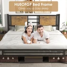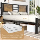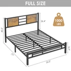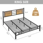 Description: 【Sturdy and Stable Construction】: This bed frame adopts high hardness steel with the strong construction, and it’s composed of 9 reinforced support leg and heavy-duty metal slats, all the designs highly enhanced steadiness. It can bear up to 1000-1200lbs, guarding your family members” safety in every day. 【Quiet and Noiseless】: To eliminate noise, this metal bed frame attached EVA strip behind the steel bar, and it’s designed with custom buckle design at the joint of steel slats and bed frame, together with the footpads on each support leg, allowing you away from annoying squeaks. 【Practical Under-Bed Storage】: This platform bed frame with headboard has under-bed storage space, with plenty space to hold your belongings, like luggage, organizers etc, and it’s easy to clean under-bed space without dust remaining. 【Easy Installation】: Bed frame can be assembled in about 40 minutes for an adult. All the parts, tools and instructions for the bed frame are in one package and each part is numbered and labeled, installation video is also provide for faster assembly. Specifications of Full Size: Material: Metal Frame, Engineered Wood, Wrought Iron, Metal Overall dimensions: 41.7'' H X 54.3" W X 77.1'' L (Adapts to standard Full size mattresses) Maximum weight capacity: 800 lb Specifications of the Queen Size: Material: Metal Frame, Engineered Wood, Wrought Iron, Metal Overall dimensions: 41.7'' H X 60.6'' W X 82.2'' L (Adapts to standard Queen size mattresses) Maximum weight capacity: 1000 lb Specifications of the King Size: Material: Metal Frame, Engineered Wood, Wrought Iron, Metal Overall dimensions: 41.7'' H X 76.3'' W X 82.2'' L (Adapts to standard King size mattresses) Maximum weight capacity: 1200 lb Package Include: 1 x Bed Frame 1 x Installation instructions