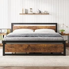 About this item STURDY - This metal bed frame is made of heavy-duty steel slats to prevent sagging. And this platform bed with 9 support legs and 12 strong steel slats, an Industrial wooden grain headboard, and a footboard to ensure adds better support to your mattress. The bed frame with headboard can stand up to 700lbs capacity. USER-FRIENDLY DESIGN - The stable bed platform ensure Non-shaky, Non-Slip, Noise Free, and Non-squeaky. No Box Spring Needed. Our bed frame with headboard are professionally designed. It has high quality. I believe it's a trusted buying experience. EXTRA STORAGE SPACE - Max Weight Capacity: 700 lbs. 13.8" Under-Bed Large Storage Space, mafull it a great option for under-bed storage, it’s the best choice for space saving. Don’t worry about limited storage space in the bedroom anymore. VINTAGE HEADBOARD & FOOTBOARD - The combination of vintage MDF board & black metal bed frame takes a mild industrial look and rustic style, without being overly trendy. Very suitable for your house style. This retro bed frame is a sleek to your bedroom. EASY ASSEMBLE & SERVICE - All the parts and tools of our platform bed frame are marked out in the manual. Clear assembly instruction helps people with zero assembly experience. It only takes around 60 minutes to complete the installation. Any problems, please feel free to contact us, we will provide you with 24 hours professional customer service. Color: Rustic board and black frame FULL SPECIFICATION Dimensions: 76.3"L x 55.1"W x 37.2"H Room Style: Fits of all styles of bedroom Package Included: Full bed frame; installation Manual; Headboard and Footboard QUEEN SPECIFICATION Dimensions: 81"L x 61.3"W x 37.2"H Room Style: Fits of all styles of bedroom Package Included: Queen bed frame; installation Manual; Headboard and Footboard KING SPECIFICATION Dimensions: 81"L x 77.15"W x 37.2"H Room Style: Fits of all styles of bedroom Package Included: King bed frame; installation Manual; Headboard and Footboard
