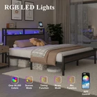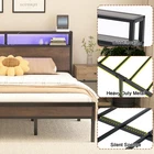 About this item 2-in-1 Storage & Charging Headboard: This brown/grey wooden headboard features a built-in charging station, equipped with 2 standard outlets, 1 USB port, and 1 Type-C port, making it effortless to charge your phone, tablet, smartwatch, and more while you sleep. The spacious storage design not only maximizes your bedside convenience but also offers a dedicated space for frequently used items, keeping your essentials organized and within easy reach Smart LED Light: The metal bed frame features multi-color RGB LED light strips, controlled via a phone app or buttons. You can choose from over 60,000 colors and adjust brightness, mode, and timer settings to match your mood. The lights can sync with music, creating a relaxing atmosphere, energizing vibe, or a romantic glow. It also works as a night light, providing comfort and security in the dark Modern Style: The full/queen/king headboard features a vintage brown wood grain finish, with its unique texture and rugged appeal exuding a warm and natural vibe. The black matte metal frame pairs seamlessly with the brown wooden headboard, preserving the warmth of classic design while integrating modern minimalism. Whether your style is modern and simple, elegantly retro, industrial, or rustic, this combination showcases a harmonious aesthetic that perfectly highlights personality and taste Sturdy and Stable: The bed frame with LED lights is made of iron alloy with a matte finish, treated for durability and rust resistance. It has 11 metal slats and 12 support legs, supporting up to 1,400 pounds. The headboard and footboard are resistant to bending and cracking, while the wood surfaces are coated for water and scratch resistance Squeak-Free Design for Undisturbed Sleep: Our full/queen/king size bed frame with headboard incorporates an embedded design that firmly holds the mattress in place, preventing any sliding or movement. The seamless locking system for the slats, along with the EVA mute stickers, effectively reduces friction and eliminates any creaking noises when getting on or off the bed. This ensures a quiet and peaceful sleep environment, providing an optimal restful experience LED Bed Feame with Storage Headboard and Charging Station This bed frame is equipped with RGB LED lights. You can use mobile APP to set the color, brightness, mode, timing function, etc. of the LED lights to meet different needs and make your home life more colorful. Storage Headboard--More Convenient 10.4 Space Under the Bed - More Tidy Payment Method Payment Method Immediate payment is required upon selecting "Buy It Now" or upon checking out through the cart. We accept payment either via PayPal or any of the following credit cards; Visa, MasterCard, Discover, and American Express. Thank you for shopping with us on eBay! Shipping Policy Shipping Policy 1.Normally, Shipped by Fedex, we will ship all orders within 2 business days after the payment is cleared. 2.Buyers have full responsibility to provide us with the correct delivery address on the checkout page before payment is made. Once your payment is completed,if the changes are needed, pls contact us before we ship the product. 3.If an CANCEL ORDER or RE-DELIVERY or ADDRESS CHANGE is needed after we ship your item out, you will be responsible for any fees associated in the condition that you contact us. Returns Policy Returns Policy Returns Accepted, all of our items come with a 30-day return policy. 1. All non-seller mistake returns for refund are subject to 20- 50 USD return fee per box and buyer should pay for the round-trip shipping fee. (E.g. does not fit, bought by mistake or no longer needed). 2. Or if you want post by self , please feel free to contact us via eBay messages for our warehouse address. Once the unwanted item was back to us, please send us the returned tracking number. Our warehouse will track the parcel and then refund you immediately when they arrive. 3.Kindly Note: Used items will not be accepted for return. 4.We reserves the rights to provide buyers a replacement, parts or a full or partial refund. Contact us Contact us 1. Before purchasing, you can contact us directly by clicking "Ask a Question" at bottom of this page. 2. After purchasing, you can contact us by clicking the button named “contact seller” in your eBay purchase history. 3. We will answer your question within 24 hours(except Holiday).