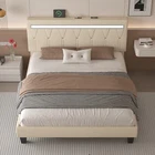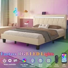 About this item 【Technology Aesthetics - LED Lights】 The upholstered bed frame headboard has built-in LED lights, with more than 60,000 colors to choose from, and it also has multiple style modes, music modes, microphone functions, and timer functions to meet your perfect expectations for lights. You can freely customize your favorite style through the app, and in the afternoon or evening leisure time, turn on the music mode, you can interact with the built-in RGB lights on the headboard and enjoy a comfortable and pleasant bedroom atmosphere 【Headboard with Charging Station】The headboard of the modern bed frame has 2 standard power sockets and 2 USB ports built in, allowing your electronic devices to be online at any time. The personalized design allows you to play your phone in bed with peace of mind, without having to worry about dealing with messy wires or finding available sockets. Let you enjoy more convenience of smart furniture 【 Artificial Leather Fabric】 This leather fabric adopts a delicate linen texture design, combining the durability of leather with the soft touch of linen. The linen texture on the leather surface is smooth and orderly, and this texture combined with the fashionable tie stripe design adds a unique visual level to the fabric. The headboard is built with high-elasticity memory foam, which is ergonomically designed, taking into account both beauty and enjoyment, allowing you to experience soft back comfort 【Adjustable Headboard Height】The headboard of the LED light bed frame has two adjustable heights, it can be adjusted from 41.34 inches to 45.27 inches to meet your needs for different headboard heights. It is also suitable for mattresses with a height of 10-14 inches, expanding your choice of mattresses and meeting your perfect needs for mattresses 【Noise-free Design】: The EVA sound-absorbing cotton and Velcro design on both sides of the bed frame allow you to quickly complete the assembly, while firmly fixing the wooden support strips, it can also prevent various squeaks. It uses 12 solid wood strips and is equipped with 9 metal legs. The overall structure allows the platform bed frame to bear a more even load, allowing you to sleep peacefully on a quiet night 【Easy to Assemble】All parts are labeled and come with detailed installation instructions. You can easily complete the assembly within 1 hour, allowing you to experience the unique assembly fun and sense of accomplishment of the puzzle style Payment Method Payment Method Immediate payment is required upon selecting "Buy It Now" or upon checking out through the cart. We accept payment either via PayPal or any of the following credit cards; Visa, MasterCard, Discover, and American Express. Thank you for shopping with us on eBay! Shipping Policy Shipping Policy 1.Normally, Shipped by Fedex, we will ship all orders within 2 business days after the payment is cleared. 2.Buyers have full responsibility to provide us with the correct delivery address on the checkout page before payment is made. Once your payment is completed,if the changes are needed, pls contact us before we ship the product. 3.If an CANCEL ORDER or RE-DELIVERY or ADDRESS CHANGE is needed after we ship your item out, you will be responsible for any fees associated in the condition that you contact us. Returns Policy Returns Policy Returns Accepted, all of our items come with a 30-day return policy. 1. All non-seller mistake returns for refund are subject to 20- 50 USD return fee per box and buyer should pay for the round-trip shipping fee. (E.g. does not fit, bought by mistake or no longer needed). 2. Or if you want post by self , please feel free to contact us via eBay messages for our warehouse address. Once the unwanted item was back to us, please send us the returned tracking number. Our warehouse will track the parcel and then refund you immediately when they arrive. 3.Kindly Note: Used items will not be accepted for return. 4.We reserves the rights to provide buyers a replacement, parts or a full or partial refund. Contact us Contact us 1. Before purchasing, you can contact us directly by clicking "Ask a Question" at bottom of this page. 2. After purchasing, you can contact us by clicking the button named “contact seller” in your eBay purchase history. 3. We will answer your question within 24 hours(except Holiday).